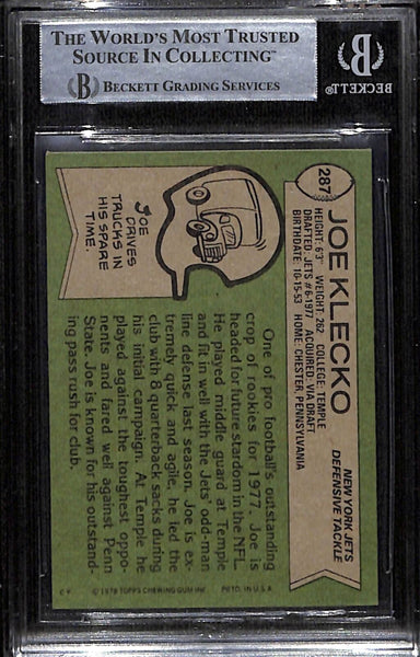 Joe Klecko Signed 1978 Topps #287 Trading Card HOF Slab Beckett 39540 The number in the listing title is just an inventory sku for our records and is not the authentication number. The item pictured is a stock photo unless otherwise noted. This is a New York Jets 1978 Topps #287 Slabbed Trading Card with "HOF" inscription that was personally autographed by Joe Klecko. Includes a certificate of authenticity from Beckett Authentication Services (BAS) and Denver Autographs.