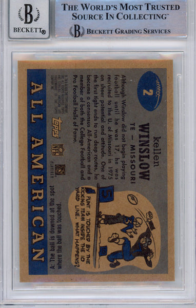 Kellen Winslow Signed 2005 Topps American #2 (Grade 10) Slabbed BAS 39902 The number in the listing title is just an inventory sku for our records and is not the authentication number. The item pictured is a stock photo unless otherwise noted. This is a Slab Ten Trading Card that was personally autographed by Kellen Winslow. Includes a certificate of authenticity from Beckett Authentication Services (BAS) and Denver Autographs.