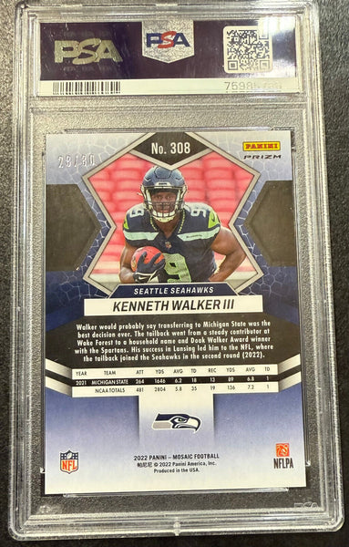 Kenneth Walker III (Seattle Seahawks) Rookie RC Signed / Autographed 2022 Mosaic Fusion Red/Yellow Choice!!!PSA Card Grade Mint 9 & Autograph Grade 10Cert: 75985785
