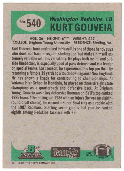 Kurt Gouveia Autographed/Signed 1991 Bowman #540 Trading Card 46250