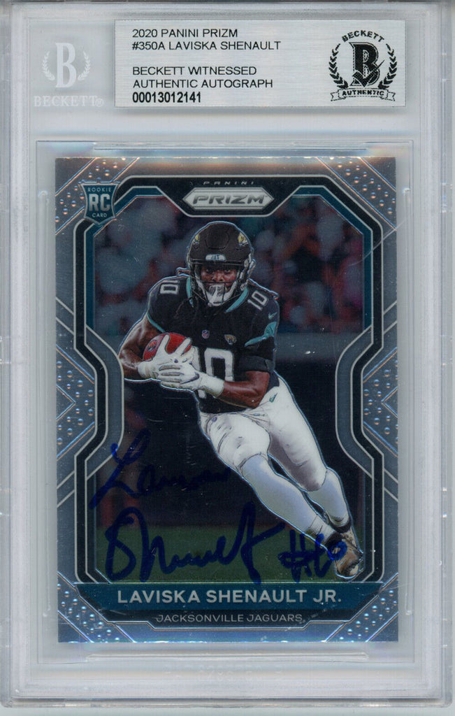 Laviska Shenault Autographed 2021 Panini Prizm #350 Trading Card BAS Slab 33253 The number in the listing title is just an inventory sku for our records and is not the authentication number. This is a 2021 Panini Prizm #350 trading card that was personally autographed by Laviska Shenault. This has been professionally slabbed by Beckett Authentication Services (BAS) and includes a certificate of authenticity from Denver Autographs.
