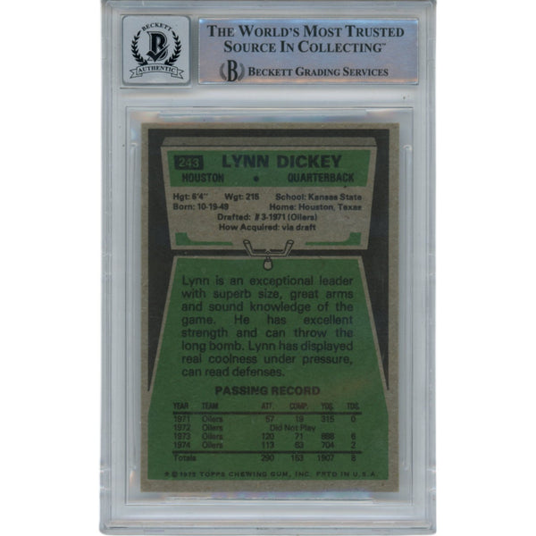 Lynn Dickey Autographed/Signed Oilers 1975 Topps #243 Trading Card Beckett 49376