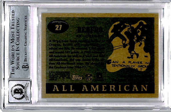 The number in the listing title is just an inventory sku for our records and is not the authentication number. The item pictured is a stock photo unless otherwise noted. This is an Oregon Ducks 2005 Topps All American #27 slabbed trading card that was personally autographed by Mel Renfro. Includes a certificate of authenticity from Beckett Authentication Services (BAS) and Denver Autographs.FREE SHIPPING within the USA on orders over $10!