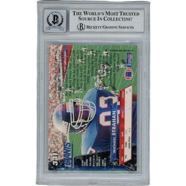 The number in the listing title is just an inventory sku for our records and is not the authentication number. The item pictured is the exact item you will receive, please see photos for condition. This is a New York Giants 1993 Fleer Ultra Slabbed 10 Grade Trading Card that was personally autographed by Michael Strahan. Includes a certificate of authenticity from Beckett Authentication Services (BAS) and Denver Autographs.