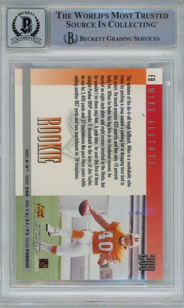 Mike Alstott Signed Tampa Bay Bucs 1996 Donruss #208 Beckett Auto 10 40684 The number in the listing title is just an inventory sku for our records and is not the authentication number. This is a 1996 Donruss #208 trading card that was personally autographed by Mike Alstott. This was professionally authenticated and slabbed by Beckett Authentication Services (BAS), also includes a certificate of authenticity from Denver Autographs.