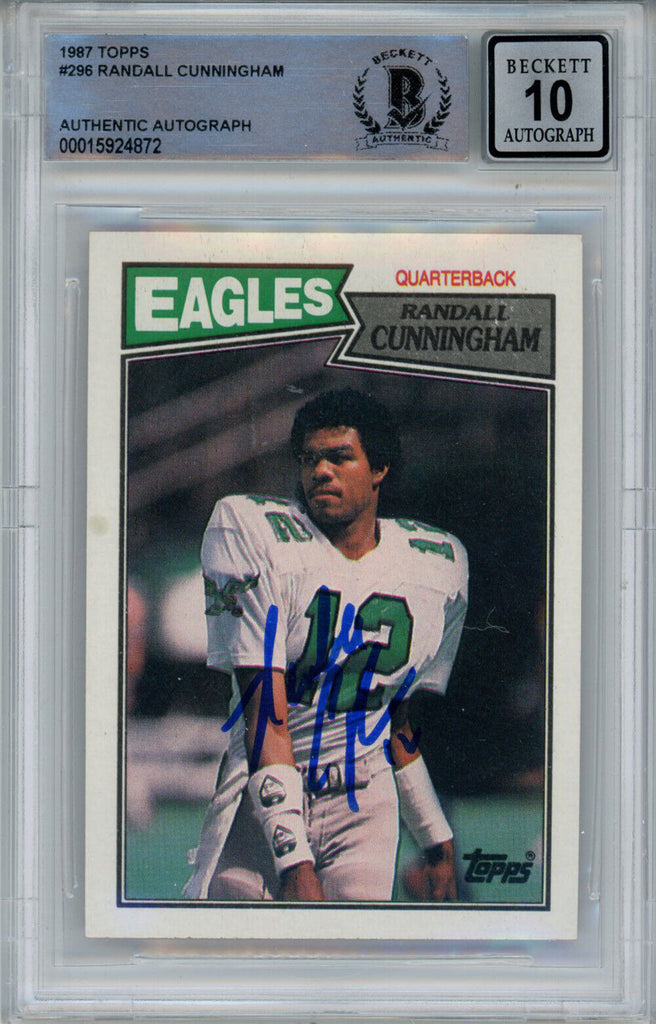 Randall Cunningham Signed 1987 Topps #296 Rookie Card Beckett 10 Slab 42912