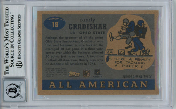 Randy Gradishar Autographed 2005 Topps All American Trading Card BAS Slab 31477 The number in the listing title is just an inventory sku for our records and is not the authentication number. This is a 2005 Topps All American trading card that was personally autographed by Randy Gradishar. This has been professionally slabbed by Beckett Authentication Services (BAS) and includes a certificate of authenticity from Denver Autographs.
