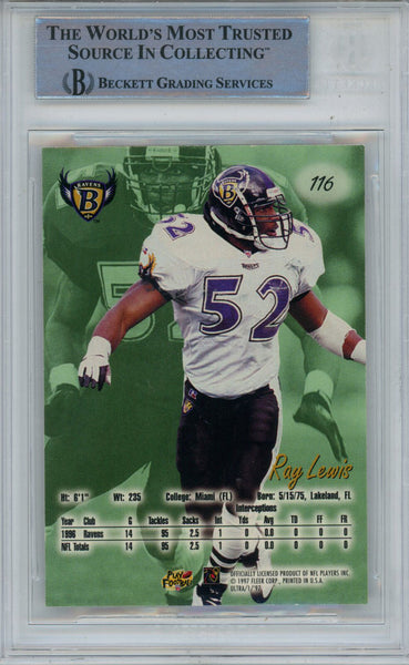 Ray Lewis Autographed 1997 Ultra #116 Trading Card Beckett Slab 43384