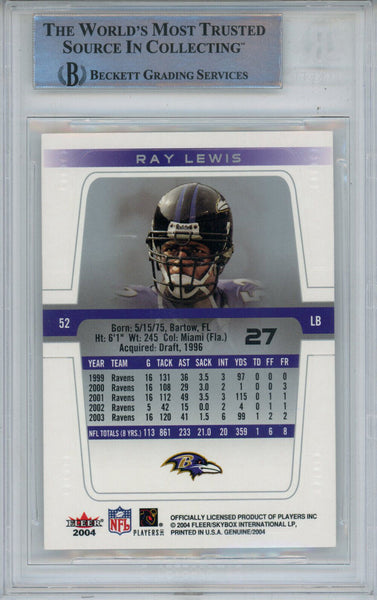 Ray Lewis Autographed 2004 Fleer Genuine #27 Trading Card Beckett Slab 43367 The number in the listing title is just an inventory sku for our records and is not the authentication number. The item pictured is a stock photo unless otherwise noted. This is a trading card that was personally autographed by Ray Lewis. This has been professionally slabbed by Beckett Authentication Services (BAS) and includes a certificate of authenticity from Denver Autographs.