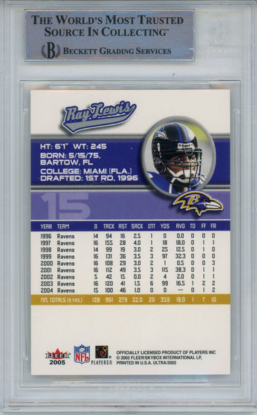 Ray Lewis Autographed 2005 Ultra #15 Trading Card Beckett Slab 43365 The number in the listing title is just an inventory sku for our records and is not the authentication number. The item pictured is a stock photo unless otherwise noted. This is a trading card that was personally autographed by Ray Lewis. This has been professionally slabbed by Beckett Authentication Services (BAS) and includes a certificate of authenticity from Denver Autographs.