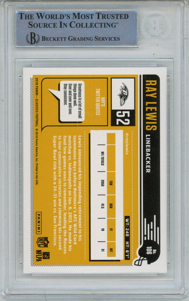 Ray Lewis Autographed 2018 Panini Classics #106 Trading Card Beckett Slab 37450