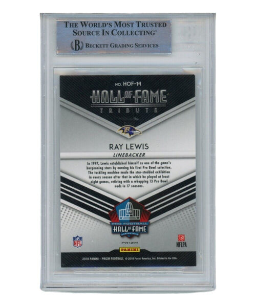 Ray Lewis Autographed/Signed 2018 HOF Tribute Trading Card Beckett 39423 The number in the listing title is just an inventory sku for our records and is not the authentication number. This is a 2018 HOF Tribute trading card that was personally autographed by Ray Lewis. This was professionally authenticated and slabbed by Beckett Authentication Services (BAS), also includes a certificate of authenticity from Denver Autographs.
