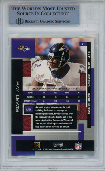 Ray Lewis Signed 2003 Absolute Memorabilia #2 Trading Card Beckett Slab 43370 The number in the listing title is just an inventory sku for our records and is not the authentication number. The item pictured is a stock photo unless otherwise noted. This is a trading card that was personally autographed by Ray Lewis. This has been professionally slabbed by Beckett Authentication Services (BAS) and includes a certificate of authenticity from Denver Autographs.