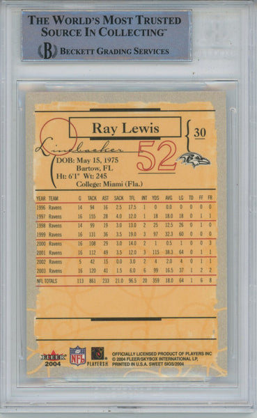 Ray Lewis Signed 2004 Fleer Sweet Sigs #30 Trading Card Beckett Slab 43355 The number in the listing title is just an inventory sku for our records and is not the authentication number. The item pictured is a stock photo unless otherwise noted. This is a trading card that was personally autographed by Ray Lewis. This has been professionally slabbed by Beckett Authentication Services (BAS) and includes a certificate of authenticity from Denver Autographs.