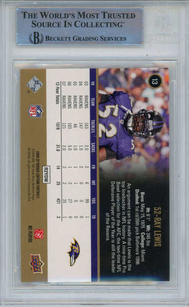 Ray Lewis Signed 2008 SP Rookie Edition #13 Trading Card Beckett Slab 43358
