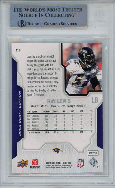 Ray Lewis Signed 2008 Upper Deck Draft Edition #110 Trading Card BAS Slab 43378