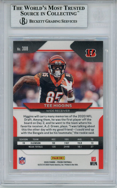 Tee Higgins Autographed 2020 Panini Prizm #308A Rookie Card BAS Slab 32112 The number in the listing title is just an inventory sku for our records and is not the authentication number. This is a 2020 Panini Prizm trading card that was personally autographed by Tee Higgins. This has been professionally slabbed by Beckett Authentication Services (BAS) and includes a certificate of authenticity from Denver Autographs.