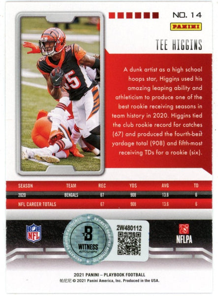 The number in the listing title is just an inventory sku for our records and is not the authentication number. The item pictured is a stock photo unless otherwise noted. This is a Cincinnati Bengals 2021 Panini Playbook #14 Trading Card that was personally autographed by Tee Higgins. Includes a certificate of authenticity from Beckett Authentication Services (BAS) and Denver Autographs.FREE SHIPPING within the USA on orders over $10!