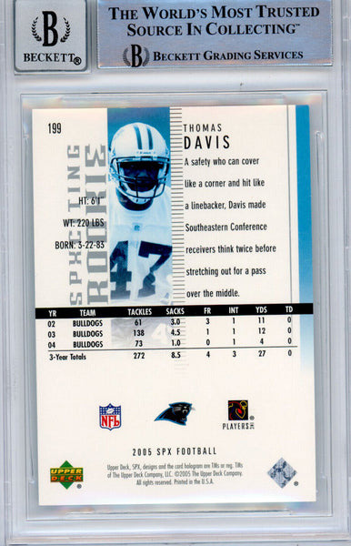 Thomas Davis Signed 2005 SPx #199A (Grade 10) BAS Slabbed 39927 The number in the listing title is just an inventory sku for our records and is not the authentication number. The item pictured is a stock photo unless otherwise noted. This is an Autographed Trading Card that was personally autographed by Thomas Davis. Includes a certificate of authenticity from Beckett Authentication Services (BAS) and Denver Autographs.