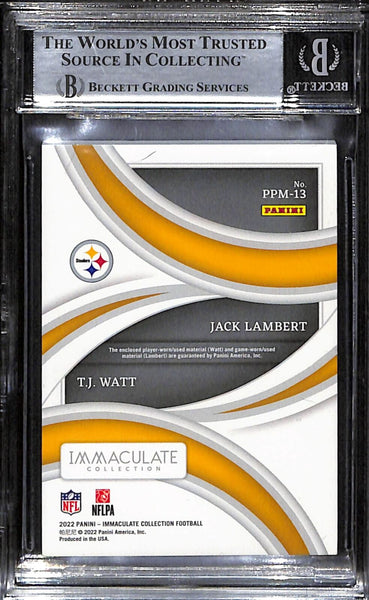 TJ Watt Jack Lambert Signed Pittsburgh Steelers 22 Immaculate Card Beckett 43108 The number in the listing title is just an inventory sku for our records and is not the authentication number. The item pictured is the exact item you will receive, please see photos for condition. This is a Pittsburgh Steelers 2022 Immaculate Slabbed Trading Card that was personally autographed by Ray Lewis with "SB MVP" inscription. Includes a certificate of authenticity from Beckett Authentication Services (BAS) and Denver Autographs.