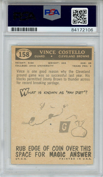 Vince Costello Autographed 1959 Topps #158 Trading Card PSA Slab 43628 The number in the listing title is just an inventory sku for our records and is not the authentication number. This is the exact item that you will receive so please see pictures for condition. This is a trading card that was personally autographed by Vince Costello. This has been professionally slabbed by Professional Authentication Services (PSA) and includes a certificate of authenticity from Denver Autographs.