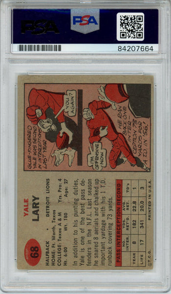 Yale Lary Autographed/Signed 1957 Topps #68 Trading Card PSA Slab 43766 The number in the listing title is just an inventory sku for our records and is not the authentication number. This is the exact item that you will receive so please see pictures for condition. This is a trading card that was personally autographed by Yale Lary. This has been professionally slabbed by Professional Authentication Services (PSA) and includes a certificate of authenticity from Denver Autographs.