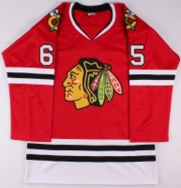 Reebok on-ice style jersey. Everything is sewn on, size 52. Hand-signed in black felt tip pen by Andrew Shaw. The autograph includes an official PSA/DNA hologram and matching COA for authenticity purposes.Authentication: PSA COA