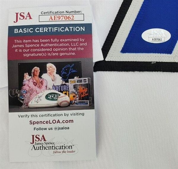 This autographed jersey has been personally hand-signed by Anthony Cirelli of the Tampa Bay Lightning. This autograph is certified by James Spence Authentication (JSA). It comes with the numbered hologram and matching Certificate of Authenticity.Custom on-field style jerseys are a more affordable option for autograph seekers. These jerseys do not have any brand name or tags and are made in the Philippines. They feature stitched on names and numbers and are made to look very similar to the on-field jerseys that the players wear. These custom jerseys are very commonly used in the memorabilia industry.