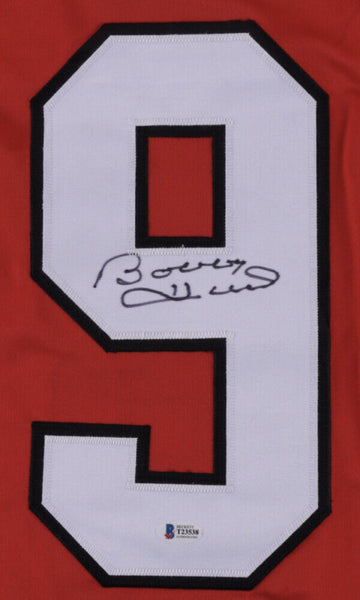 Custom on-ice style jersey. Everything is sewn on, size XL. Hand-signed and inscribed by Bobby Hull (HOF).The lot / autograph(s) includes an official Beckett Authentication Services serially-numbered hologram and matching COA for authenticity purposes.Authentication: Beckett COA
