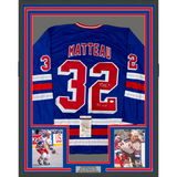 Framed Autographed/Signed Stephane Matteau 33x42 94 Cup Blue Jersey JSA COA