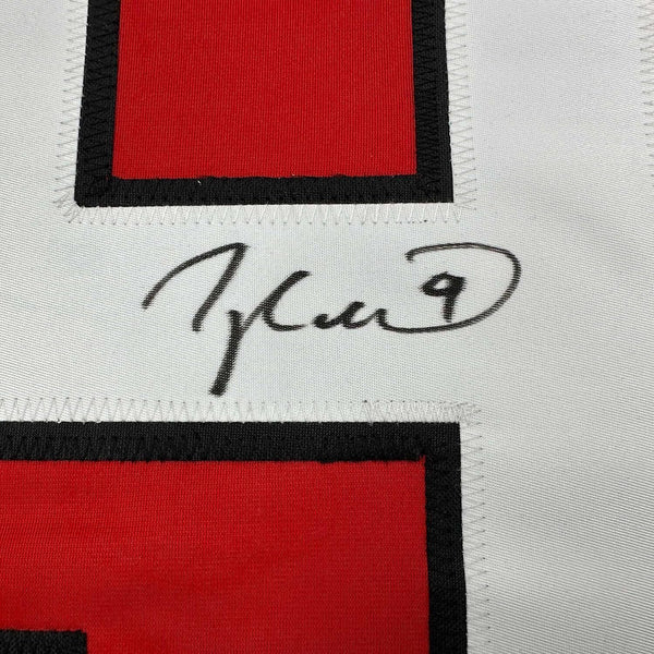 Framed Autographed/Signed Taylor Hall 35x39 New Jersey Red Hockey Jersey JSA COA The item is professionally framed and matted with two 5x7 photos, measures 35x39 inches and is ready to be hung in your man cave! Photo and matting requests can be made.