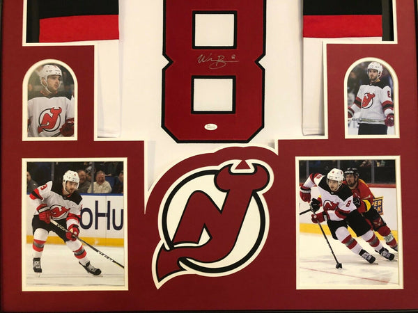 Custom Framed Will Butcher hand signed New Jersey Devils jersey.JSA Hologram and COA(#WPP162718)The authentication is from JSA. This signature is authenticated by a representative of JSA! 100% AUTHENTIC!!! The jersey has fully stitched numbers on the front and back. It is a great item and a must for all great sports fans!This item is professionally framed, it measures 32"x40" inside , 42"x34" outside , using UV protective Acrylic glass for safe keeping and safe transport, team color matting, black moulding and hanging hooks on the back. All additional items in frame seen in pictures included. 100% ready to hang in your fan cave.