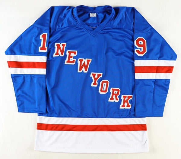 Custom On-Ice style jersey with everything sewn on, size XL. Hand-signed and inscribed by Jean Ratelle (HOF).The autograph includes an official Beckett Authentication Services serially numbered hologram for authenticity purposes. The signing of this item was witnessed by Beckett.Authentication: Beckett Hologram