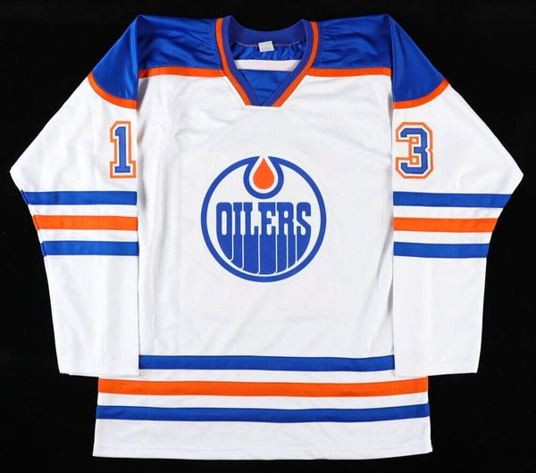 Custom on-ice style jersey. Everything is sewn on, size XL. Hand-signed in silver paint pen by Ken Linseman. The autograph includes an official James Spence Authentication (JSA) hologram and matching COA for authenticity purposes. The signing of this item was witnessed by JSA.Authentication: JSA COA