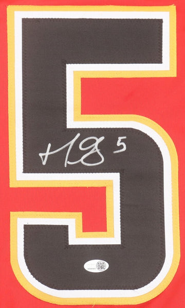 Custom on-ice style jersey with everything sewn on, size XL. Hand-signed by Mark Giordano.The autograph includes an official James Spence Authentication (JSA) hologram and QR Code card for authenticity purposes. The signing of this item was witnessed by JSA.Authentication: JSA Hologram with QR Code card