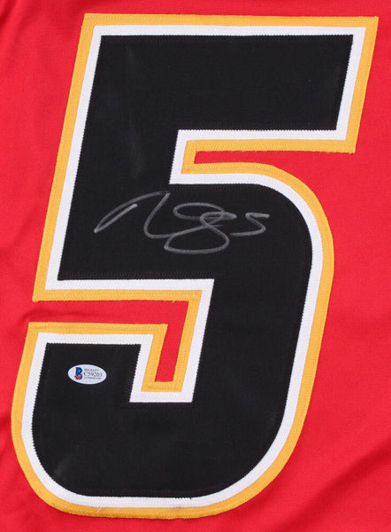 Custom on-ice style captain's jersey. Everything sewn on, size XL. Hand signed in silver paint pen by Mark Giordano. The lot / autograph(s) includes an official Beckett Authentication Services serially numbered hologram and matching COA for authenticity purposes.Authentication: Beckett COA