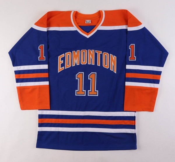 Custom on-ice style jersey. Everything is sewn on, size XL. Hand-signed by Mark Messier (HOF).The lot / autograph(s) includes an official James Spence Authentication (JSA) hologram and QR Code card, as well as an official CollectibleXchange hologram for authenticity purposes.Authentication: JSA Hologram with QR Code card & CollectibleXchange Hologram