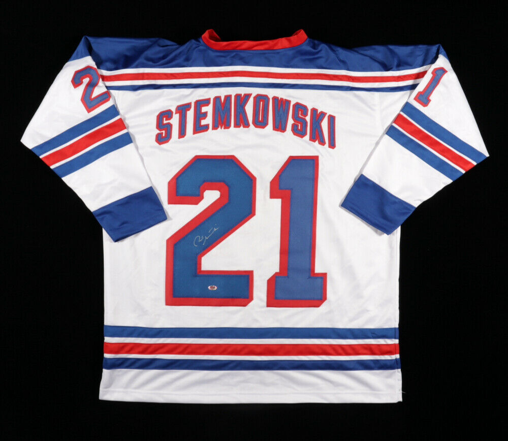 Custom on-ice style jersey. Everything is sewn on, size XL. Hand-signed by Pete Stemkowski.The lot / autograph(s) includes an official Rochester Sports Autographs hologram for authenticity purposes.Authentication: RSA Hologram