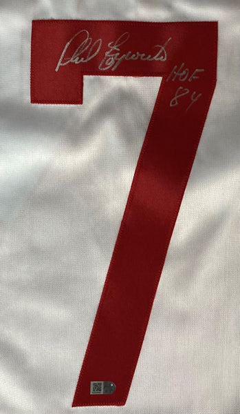 Featured is a Phil Esposito signed custom hockey jersey, inscribed "HOF 84". This jersey has been hand signed by Esposito and comes with the Sports Integrity hologram and certificate of authenticity. This jersey features professionally sewn letters and numbers and is size XL. This jersey has no team tags or emblems and is intended as a sports collectible. This jersey would make a great addition to any sports memorabilia collection! SPECIFICATIONS Autographed By: Phil Esposito Team: Sport: Hockey Authentication: James Spence Authentication (JSA)