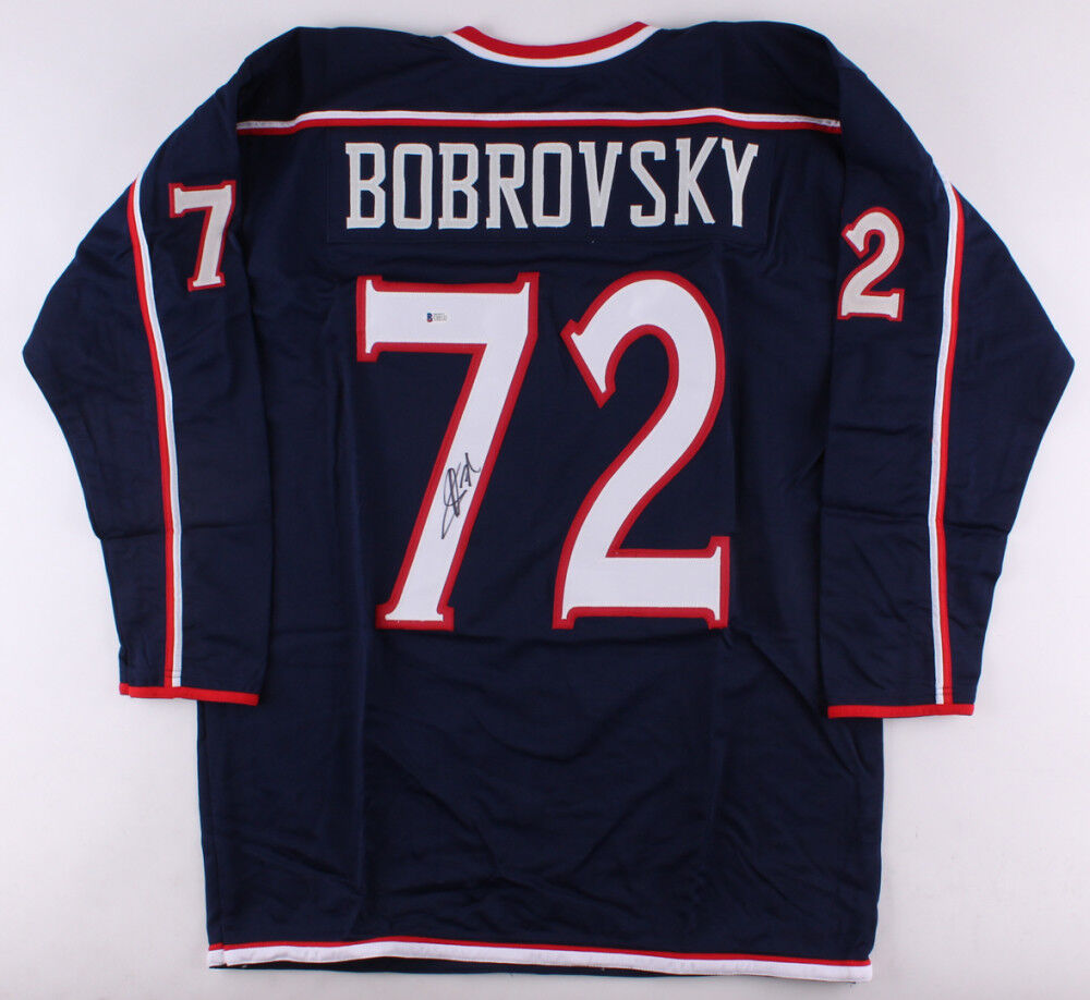 Reebok on-ice style jersey. Everything sewn on, size 50. Hand-signed in black felt-tip pen by Sergei Bobrovsky (Flyers). The autograph includes an official Beckett Authentication Services serially numbered hologram and matching COA for authenticity purposes.Authentication: Beckett COA