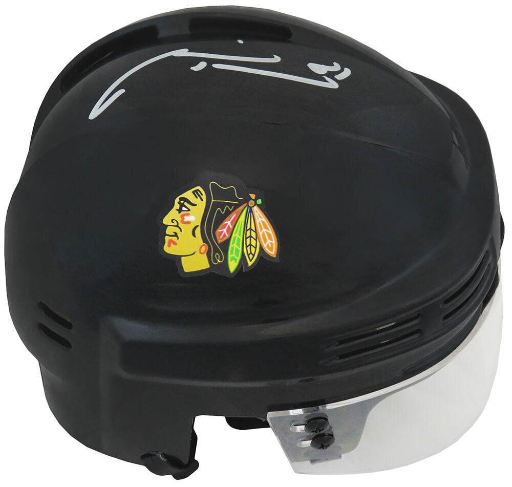 Marian Hossa signed Chicago Blackhawks black hockey mini helmet. Item comes with a Schwartz Sports Memorabilia tamper-proof numbered hologram and Certificate of Authenticity which can be verified online.