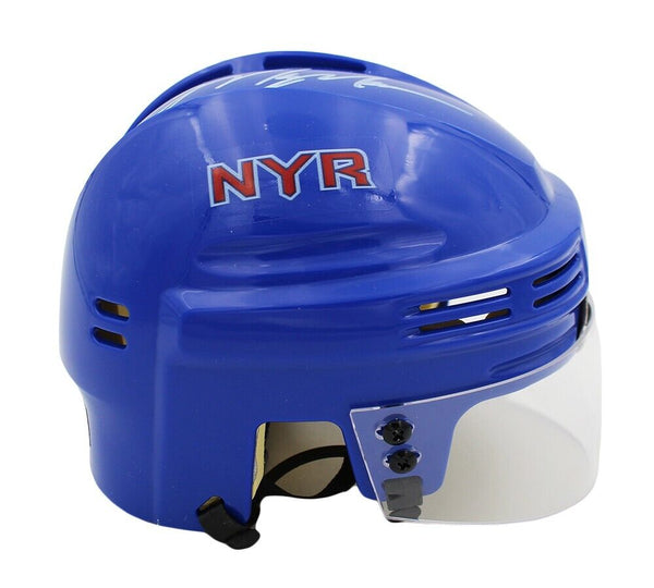 A New York Rangers Blue Sportstar Mini Helmet hand signed by Mark Messier. The item and signature are in excellent condition. Mark Was a 3x MVP, he was selected 16 times for NHL Allstar games, he has also earned the nickname "The Moose" due to his aggression and strength . AUTHENTICATION: The item is accompanied by a JSA Serial Numbered and Databased Hologram.