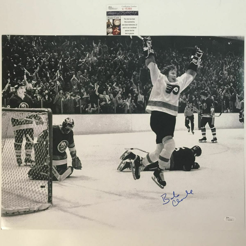 Autographed/Signed BOBBY BOB CLARKE B&W Philadelphia Flyers 16x20 Photo JSA COA Every item we sell is simply authentic and certified by a trusted third party authenticator. Buy with confidence and feel free to ask us any questions.