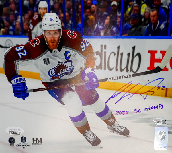 Introducing the Gabe Landeskog Colorado Avalanche Autographed 8X10 Photo - a captivating tribute to the Avalanche's 2022 Stanley Cup Championship triumph. These exclusive memorabilia piece features the unmistakable signature of Gabe Landeskog, the heart and soul of the Avalanche, commemorating a historic moment in the world of hockey. Fanatics & JSA. Product Highlights: Hand-Signed by Gabe Landeskog: Each 8X10 photo is personally autographed by the Colorado Avalanche captain, ensuring a genuine and unique addition to your collection. 2022 Stanley Cup Champions Edition: Relive the excitement of the Avalanche's journey to victory with this iconic photo capturing the elation of Gabe Landeskog and his teammates as they clinched the 2022 Stanley Cup Championship. High-Quality Print: Meticulously printed on premium 8X10 photo paper, this image boasts exceptional clarity and detail, bringing the championship moment to life in vivid color. Certificate of Authenticity: Your investment is protected by a Certificate of Authenticity (COA), guaranteeing the legitimacy of Gabe Landeskog's autograph. Rest easy knowing you own a true piece of sports history. Perfect for Avs Enthusiasts: Whether you bleed burgundy and blue or you're a passionate hockey memorabilia collector, this autographed photo is a must-have to commemorate the Avalanche's stellar achievement. Limited Edition: This collector's item is available in limited quantities, enhancing its exclusivity and making it a prized possession for fans and collectors alike. Ready for Display: Sized at a perfect 8X10 inches, this autographed photo is ready to be framed and proudly showcased in your home, office, or fan cave. Don't miss out on the chance to own a piece of Avalanche history. Secure your Gabe Landeskog Autographed 8X10 Photo from the 2022 Stanley Cup Championship now and celebrate the glory of your favorite team's triumph!