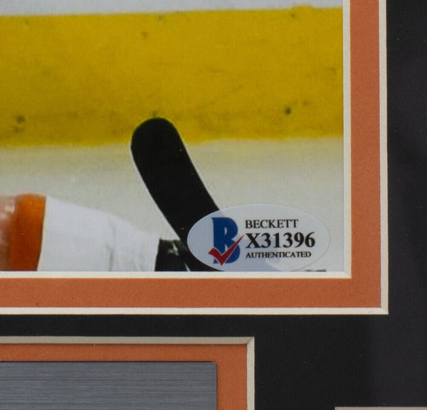 Featured is a Kevin Hayes signed framed 8x10 Philadelphia Flyers photo. This photo was hand signed by Kevin Hayes and has been authenticated by Beckett authentication services. Included with the photo is a Beckett hologram and certificate of authentication. Brand new professional framing featuring double matting and an engraved nameplate. The frame measures approximately 11x14 in total size and it is ready for display. This photo would make a great addition to any sports memorabilia collection. SPECIFICATIONS Autographed By: Kevin Hayes Team: Philadelphia Flyers Sport: Hockey-NHL Authentication: Beckett Grading Services
