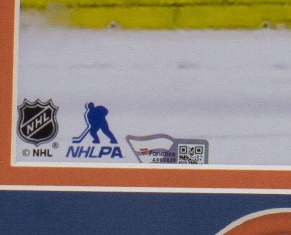 Featured is a Mathew Barzal signed framed 16x20 New York Islanders photo, in which he added the "2018 Calder" inscription. This photo was hand signed by Mathew Barzal and authenticated by Fanatics authentication services. Included with the photo is a Fanatics hologram and certificate of authentication. Brand new professional framing featuring double matting and engraved nameplate. The frame measures approximately 22x27 in total size, and it is ready for display. This item would make a great addition to any sports memorabilia collection. SPECIFICATIONS Autographed By: Mathew Barzal Team: New York Islanders Sport: Hockey-NHL Authentication: Fanatics Authentic