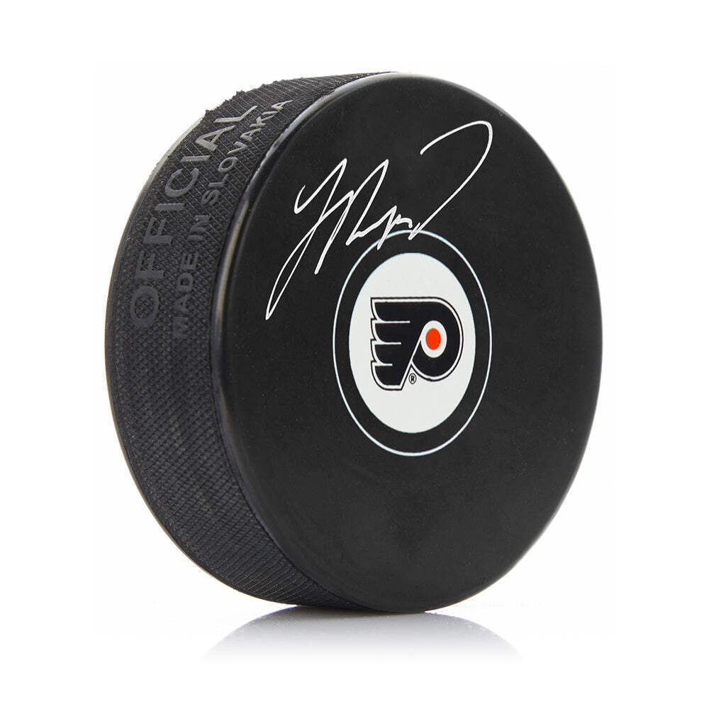 Jamie Drysdale Autographed Signed Philadelphia Flyers Hockey Puck JSA PSA Jamie Drysdale Autographed Philadelphia Flyers Hockey Logo Puck Official NHL logo puck with signature from Flyers star Jamie Drysdale - authenticated by Dynasty Sports This hockey photo has been hand-signed by Philadelphia Flyers star Jamie Drysdale. It has been authenticated by Dynasty Sports during a public autograph signing on March 3, 2024. Hand-Signed by Philadelphia Flyers star Jamie Drysdale Signature is bold and clear on the puck Authenticated with Dynasty Sports serially numbered hologram during public autograph event Official NHL puck Custom framing options available - contact our storefront for information regarding customizing this in the frame and matting colors of your choice! Add a nameplate and team logo medallions! Please allow additional time for framing and shipping.