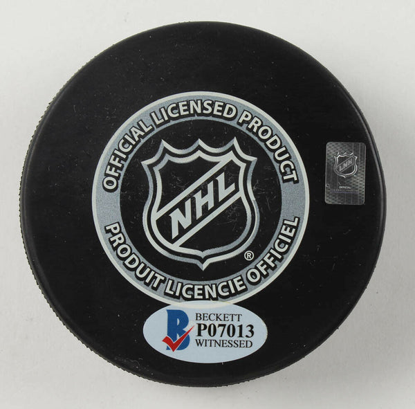 Chicago Blackhawks logo hockey puck. Hand-signed by Jeremy Roenick.The lot / autograph(s) includes an official Beckett Authentication Services serially-numbered hologram and matching COA for authenticity purposes. The signing of this item was witnessed by Beckett.Authentication: Beckett COA