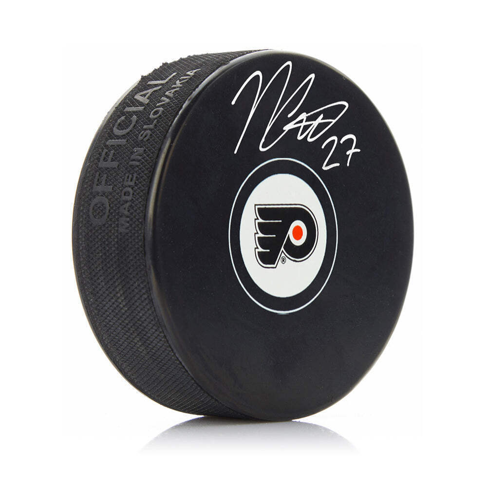 Noah Cates Autographed Philadelphia Flyers Hockey Logo Puck Official NHL logo puck with signature from Flyers star Noah Cates - authenticated by Dynasty Sports This officially licensed NHL logo puck has been signed by Philadelphia Flyers star Noah Cates. It has been authenticated by Dynasty Sports during a public autographed experience. Hand-Signed by Philadelphia Flyers star Noah Cates Signature is bold and clear on the puck Authenticated by Dynasty Sports from public autograph event on October 27, 2023 Official NHL puck Custom framing options available - contact our storefront for information regarding customizing this in the frame and matting colors of your choice! Add a nameplate and team logo medallions! Please allow additional time for framing and shipping.