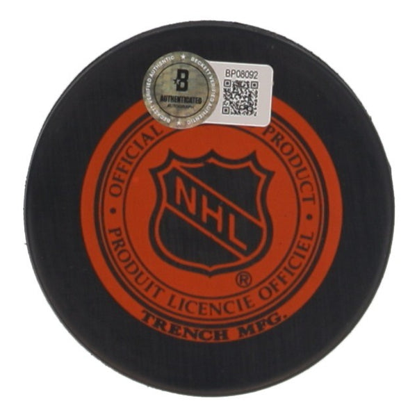 Detroit Red Wings logo hockey puck. Hand-signed by Norm Ullman (HOF).The autograph includes an official Beckett Authentication Services serially numbered hologram and QR Code card for authenticity purposes.Authentication: Beckett Hologram with QR Code card